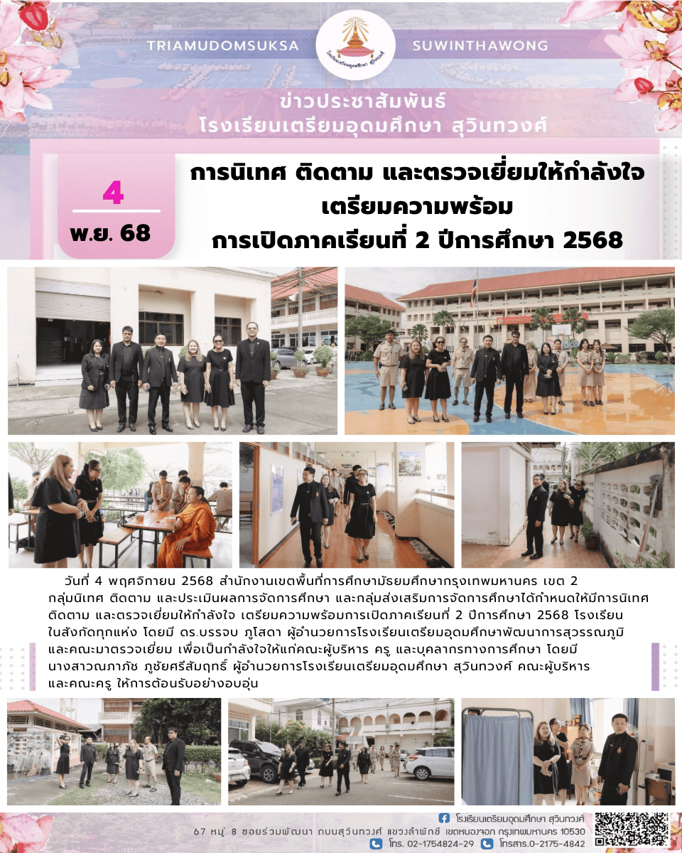 ประกาศโรงเรียนเตรียมอุดมศึกษา สุวินทวงศ์ เรื่อง รายชื่อนักเรียนผู้มีสิทธิ์เข้าสอบคัดเลือก ประเภทห้องเรียนพิเศษ ม.1 ปีการศึกษา 2568 25 ก.พ. 68