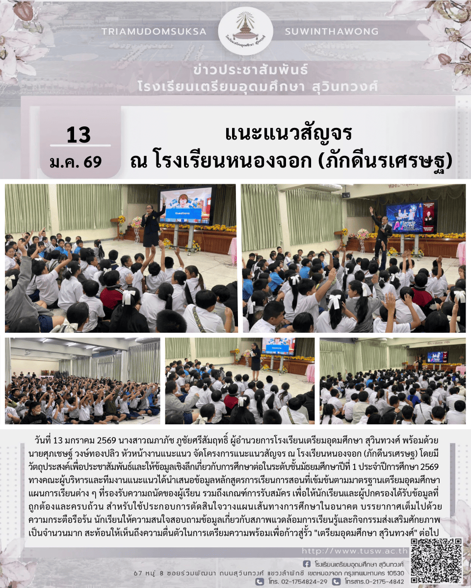 แนะแนวสัญจร ณ โรงเรียนหนองจอก (ภักดีนรเศรษฐ)