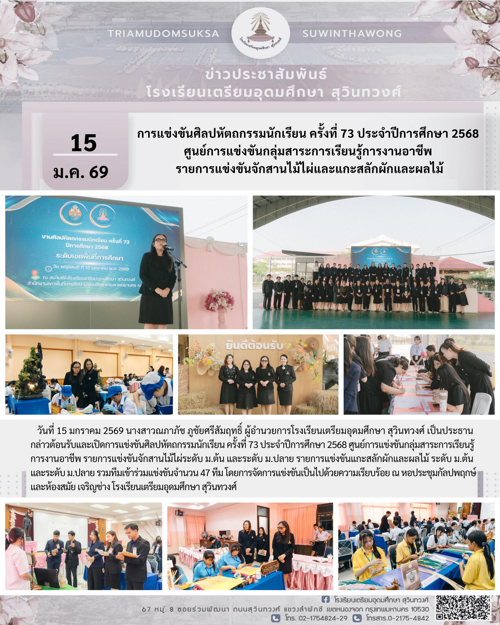 ต้อนรับและเปิดการแข่งขันศิลปหัตถกรรมนักเรียน ครั้งที่ 73 ประจำปีการศึกษา 2568 ศูนย์การแข่งขันกลุ่มสาระการเรียนรู้ การงานอาชีพ รายการแข่งขันจักสานไม้ไผ่และรายการแข่งขันแกะสลักผักและผลไม้